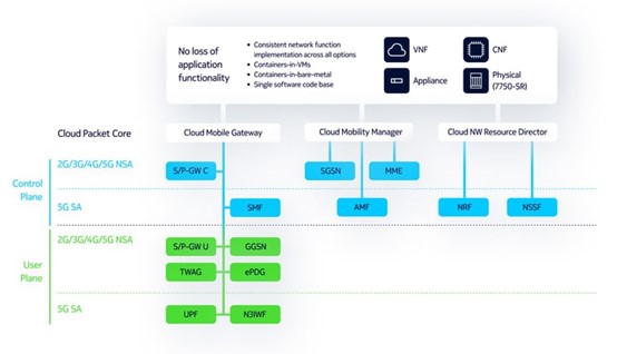 诺基亚分组核心网由云移动网关(CMG)、云移动管理器(CMM)和云网络资源控制器(CNRD)组成。这些产品提供了演化分组核心网(EPC)、5G核心(5GC)和2G/3G移动分组核心网域的关键组件,用于创建单个分组核心网网络。