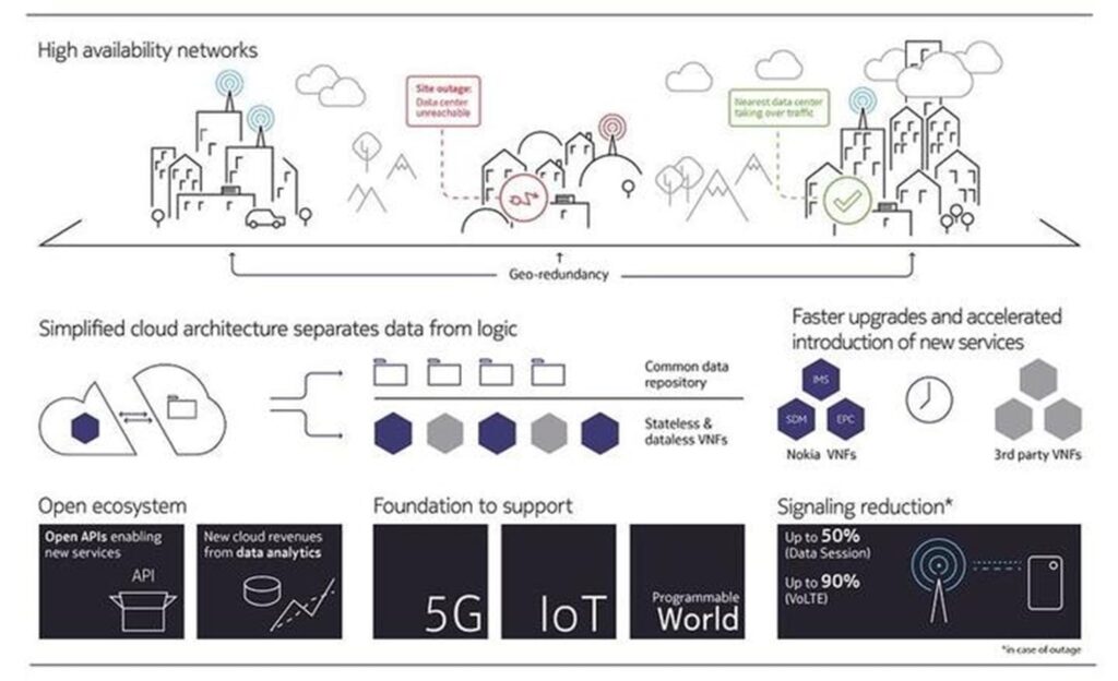 云优化是一个革命性的步骤,通过将所有用户和会话数据移动到一个高度可靠、可扩展和随时可用的数据存储,即诺基亚共享数据层,来简化核心网络和优化云VNF机器。使用这些共享数据,所谓的无状态VNFs可以通过更好地洞察用户行为,实现更快速的服务创新和更快的收入增长。反过来,这种洞察力有助于运营商开发创新和定制服务,创造更多收入。