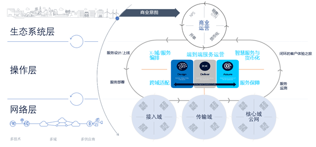 - 通过单一平台和业务意图驱动的端到端服务编排,释放网络的价值