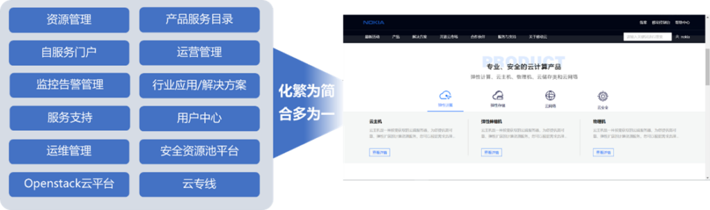 将产品服务目录、行业应用/解决方案、运维管理等功能模块和各类云资源统一整合到行业云门户上,梳理行业业务流程,实现行业云资源统一管理、编排及自动化服务开通。同时通过统一云管平台的建设,实现运维数据的统一,为智能运维提供基础。